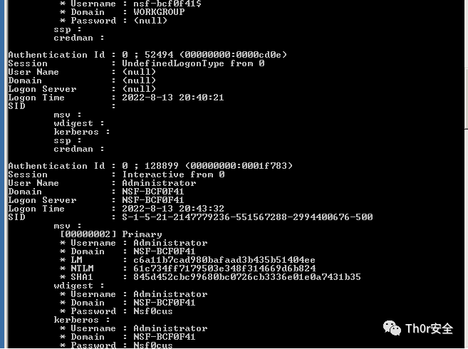 Sekurlsa::logonpasswords获取账户密码信息