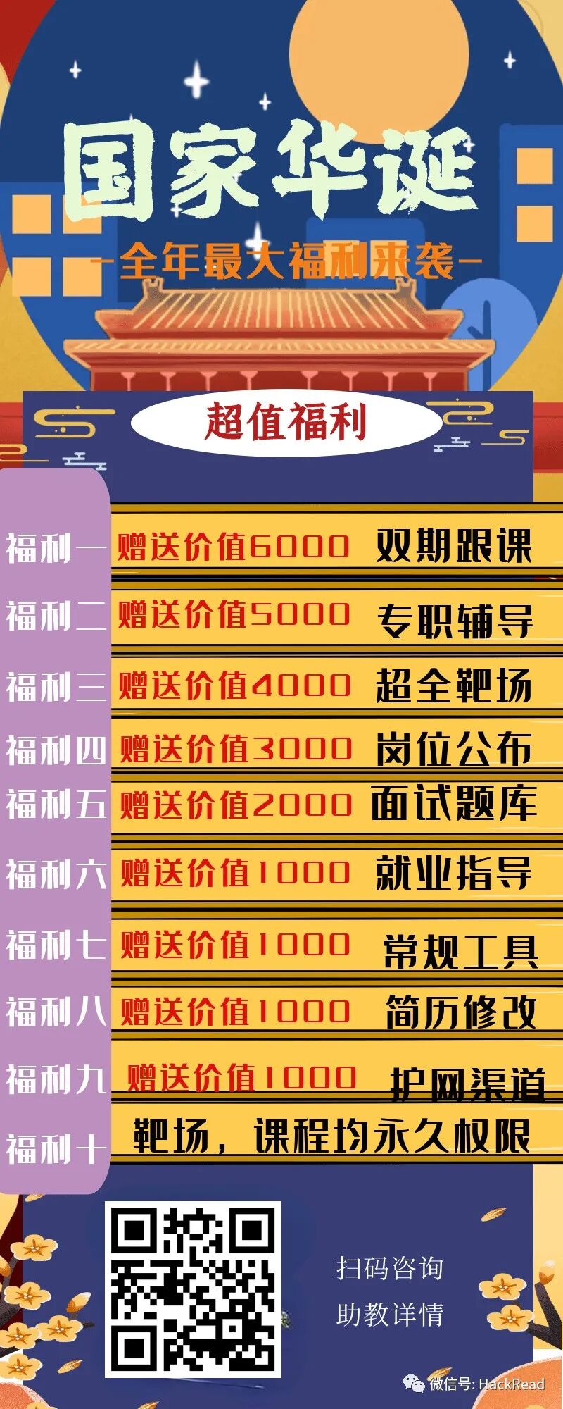 国庆期间痛痛快快玩一场,假期结束后,开始体系化学习“黑客”之旅,一期理论,一期实战!课程后期还有老师手把手教你挖漏洞...