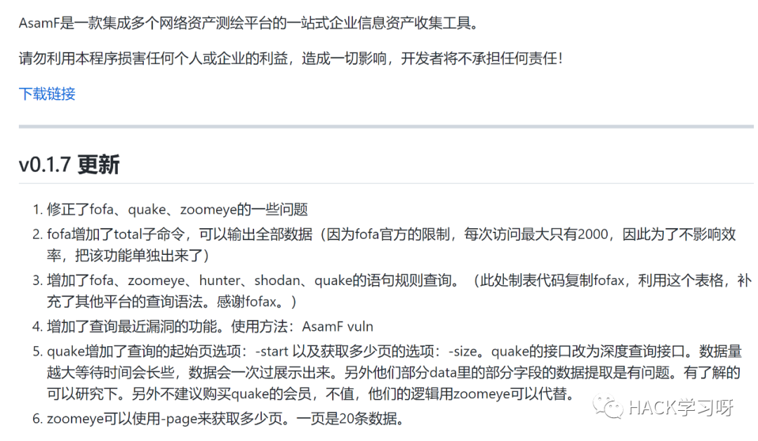 AsamF是集成Fofa、Quake、Hunter、Shodan、Zoomeye、Chinaz、0.zone及爱企查的一站式企业信息资产收集、网络资产测绘工具。