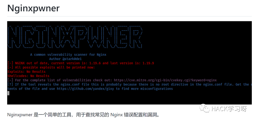 Nginxpwner 是一个简单的工具,用于查找常见的 Nginx 错误配置和漏洞