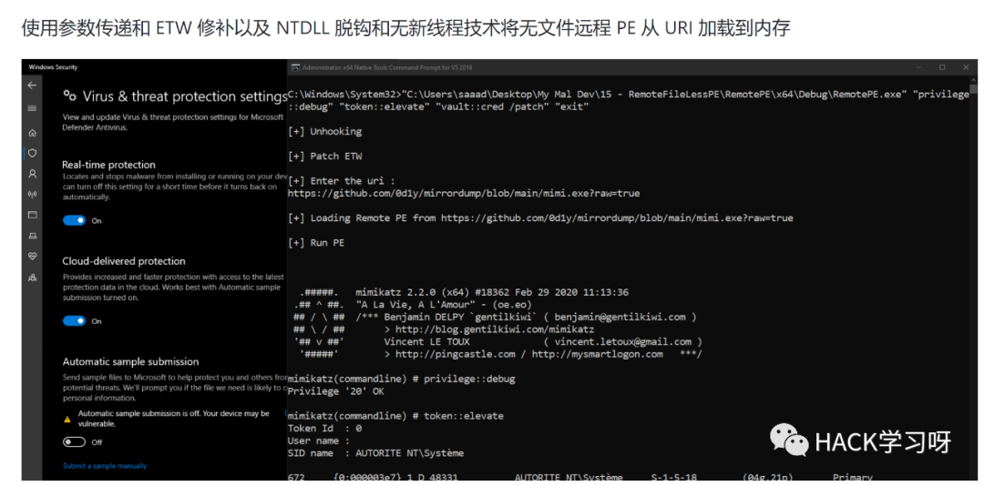 使用参数传递和 ETW 修补以及 NTDLL 脱钩和无新线程技术将无文件远程 PE 从 URI 加载到内存