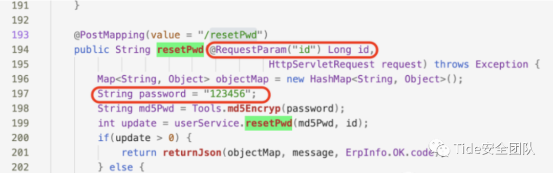 以下代码使用ID标识用户,且未做权限划分,攻击者可通过修改ID值重置他人密码。4. 密码重置步骤未进行校验 产生原因:系统对修改密码的步骤、流程没有做校验,导致可直接输入最终修改密码的URL进行跳转,直接重置密码。测试方法:这种情况一般发生在多个步骤重置的过程中,比如重置步骤为“1.填写用户名 2.填写手机号码获取验证码 3.填写短信验证码 4.填写新密码”。攻击者先使用自己的账号走一遍流程,获取每个步骤的URL,记录最后一步设置新密码的URL。重置受害者密码时,在获取验证码时直接输入记录的URL跳转到设置新密码的界面进行重置。