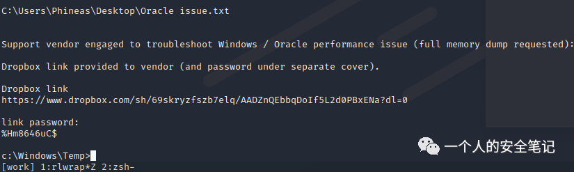 在查看机器注册用户的文件夹时,发现在 Phineas 用户的桌面文件夹中存在一段备注信息: