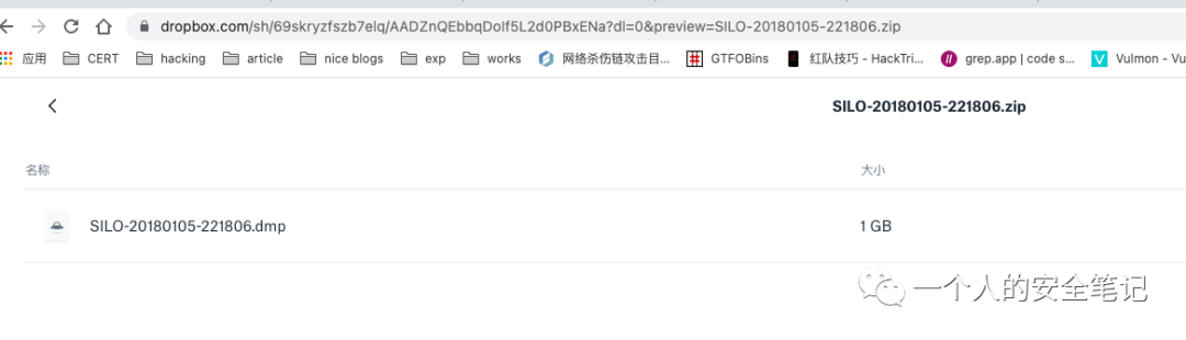 在 Dropbox 网盘中保存有一个 Windows 内存 dump 文件,浏览王牌输入密码就可以进行下载: