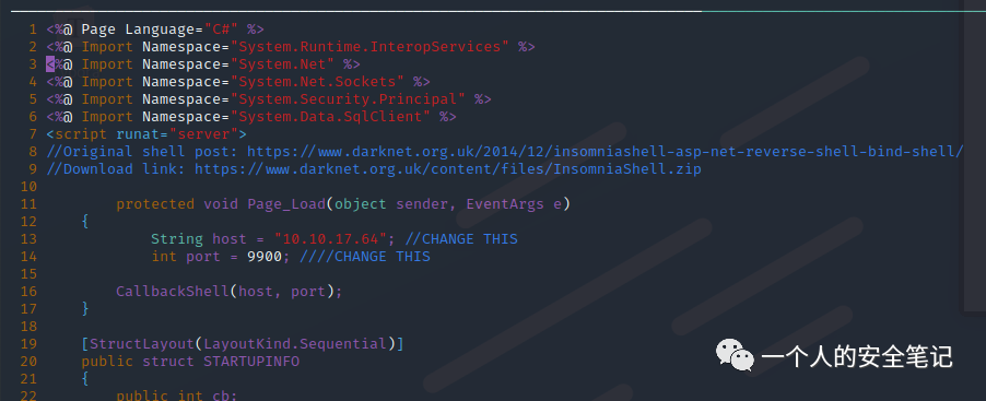 脚本文件 - https://github.com/borjmz/aspx-reverse-shell/blob/master/shell.aspx