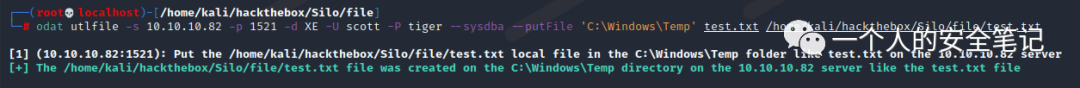 $ odat utlfile -s 10.10.10.82 -p 1521 -d XE -U scott -P tiger --putFile C:\inetpub\wwwroot test.txt `pwd`/test.txt --sysdba文件写入成功。其实类似的模块还有很多,可以在帮助指令中查看到: