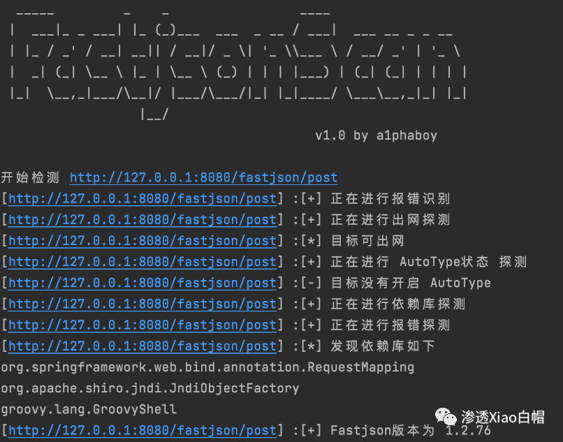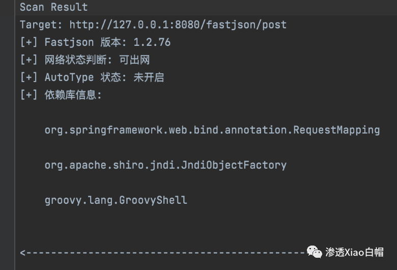 FastjsonExpFramework一共分为探测、利用、混淆、bypass JDK等多个模块,而FastjsonScan 是其中一部分,通过报错、请求、依赖库等探测实现多方面定位fastjson版本