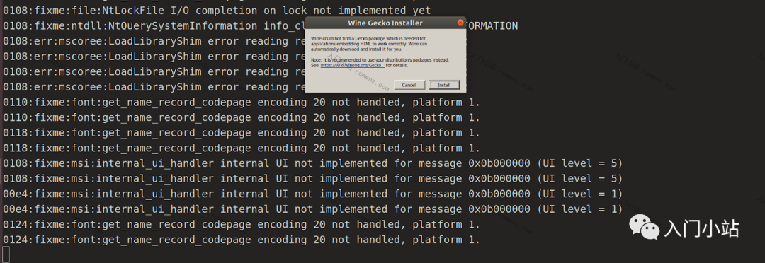 现在通过单击安装来安装 Gecko。将会创建一个 wineprefix 并打开 Wine 设置窗口。
