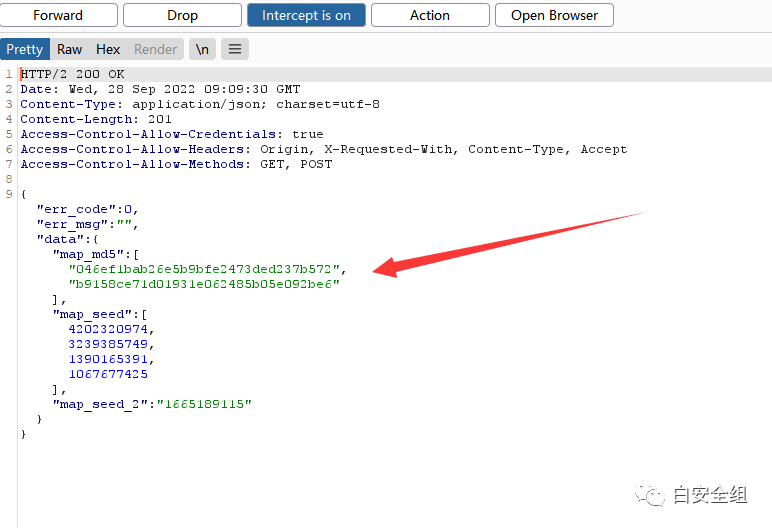 这里图片不是很清楚,选择这个是将这个数据包的一个返回数据包在下一个包中返回给我们,有点绕口,简单说就是我们可以修改它的一个返回的数据包,点击图中这里之后我们forward。
