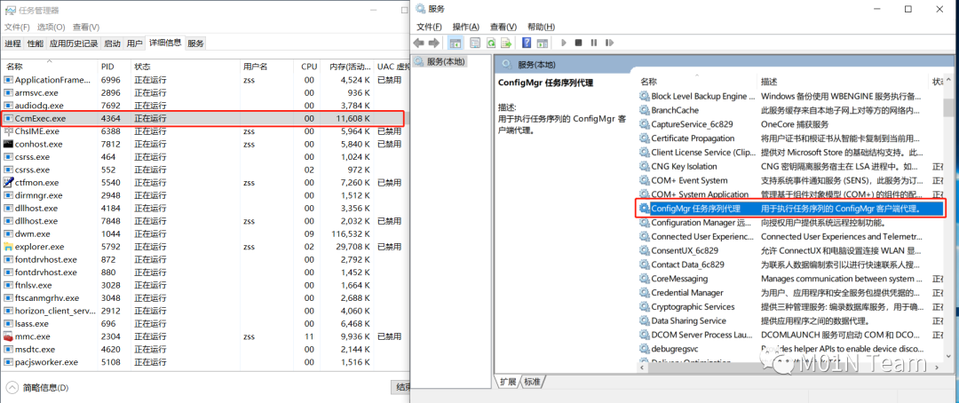 对于SCCM攻击利用首先查看目标环境是否存在,可以从目标机器中查看是否存在CcmExec.exe程序和ConfigMgr任务序列代理服务,如果存在即目标机器为SCCM的客户端机器,目标环境存在SCCM管理站点。
