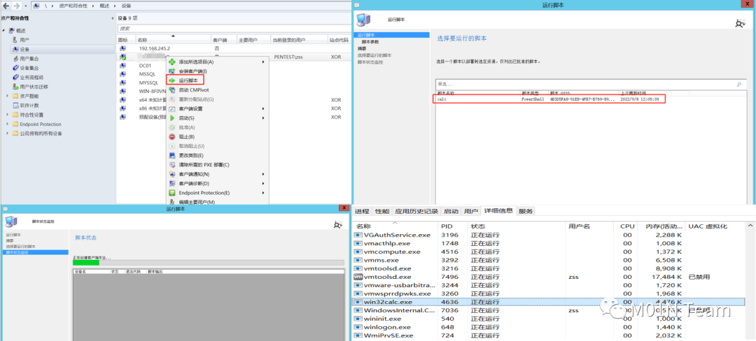 通过客户端进行下发成功执行powershell脚本,在客户端机器中执行win32calc.exe。