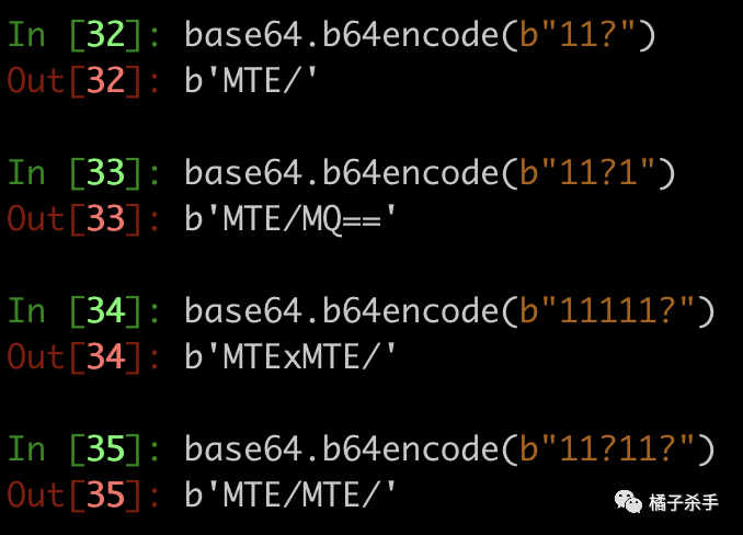 同理,编码后出现 + 可能的字符有 >、~;编码后出现 = 的原因是源字符串长度不为 = 的倍数。这些都可以通过加无关紧要的字符来解决 :