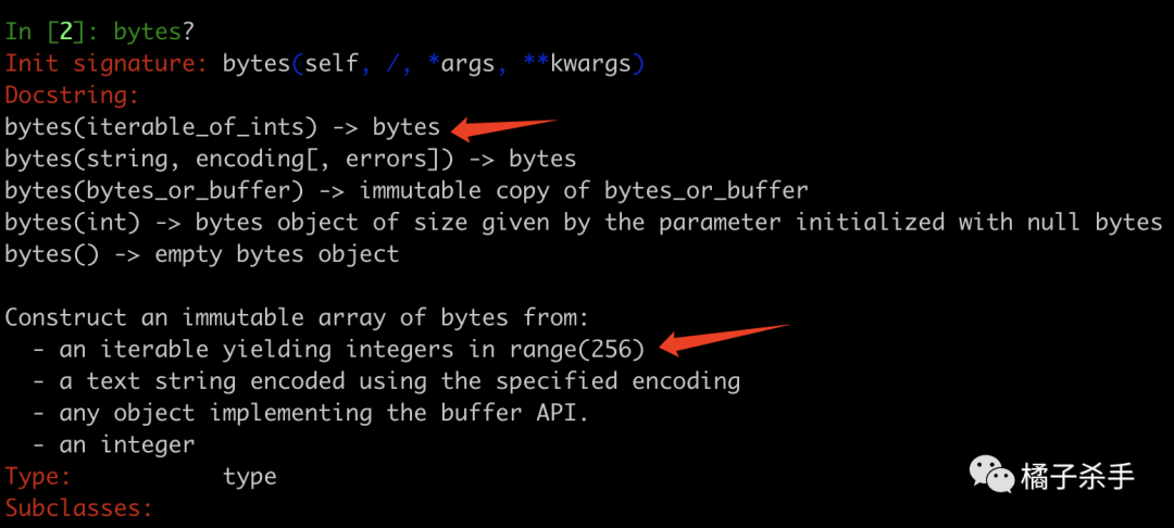也就是说,这个函数可以接收一个可迭代对象,里面是 0-256 的整数,然后就会返回一个 bytes: