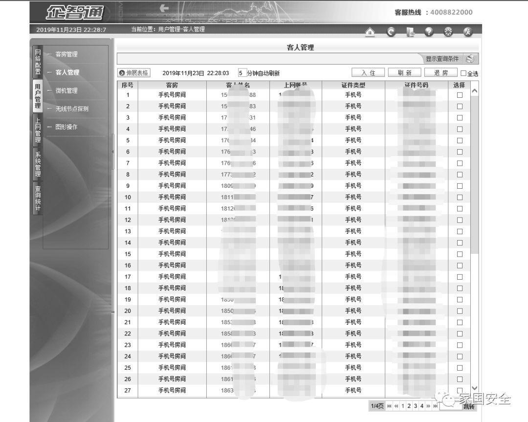 这个上网管理系统的内容还是很丰富的。当前有159个连WIFI的酒店客户。