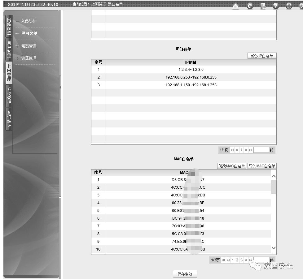 在客房管理菜单里面找到不同部门的上网账号,拿到电脑端登不上,手机界面就可以登录.......也来不及分析是什么问题导致的了,碰巧在后台发现了这货竟然开了白名单,直接把电脑MAC地址添加进白名单,管他三七二十一、六六三十六、七七四十、九九八十一 直接不走认证了。