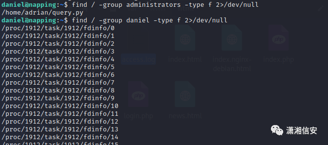 find / -group administrators -type f 2>/dev/nullfind / -group daniel -type f 2>/dev/null