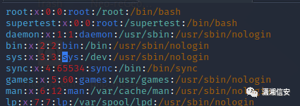 supertest:x:0:0:root:/supertest:/bin/bashshadow文件每一行代表一个用户,每一行通过冒号:分为九个部分