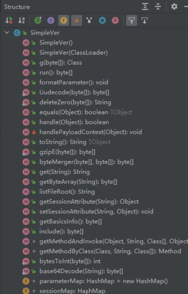 接下来我们来看下目前上面我们还原出来的SimpleVer这个类存在执行哪命令的方法: