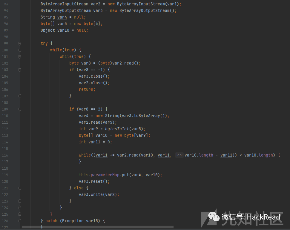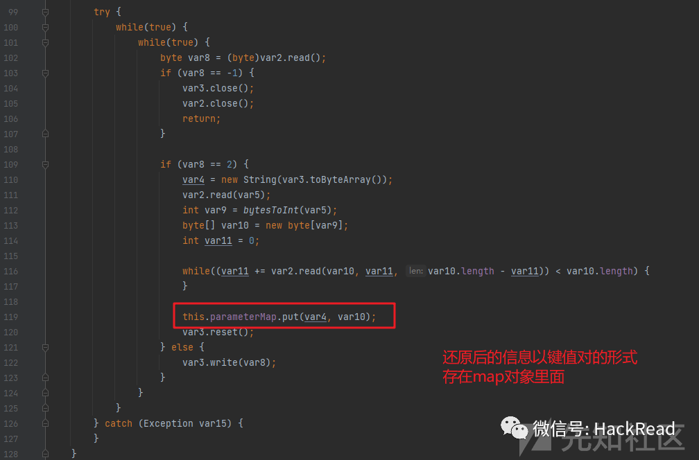 3、在这之后就进入了最后一个阶段了,最后一个个读字节然后做处理,如下: