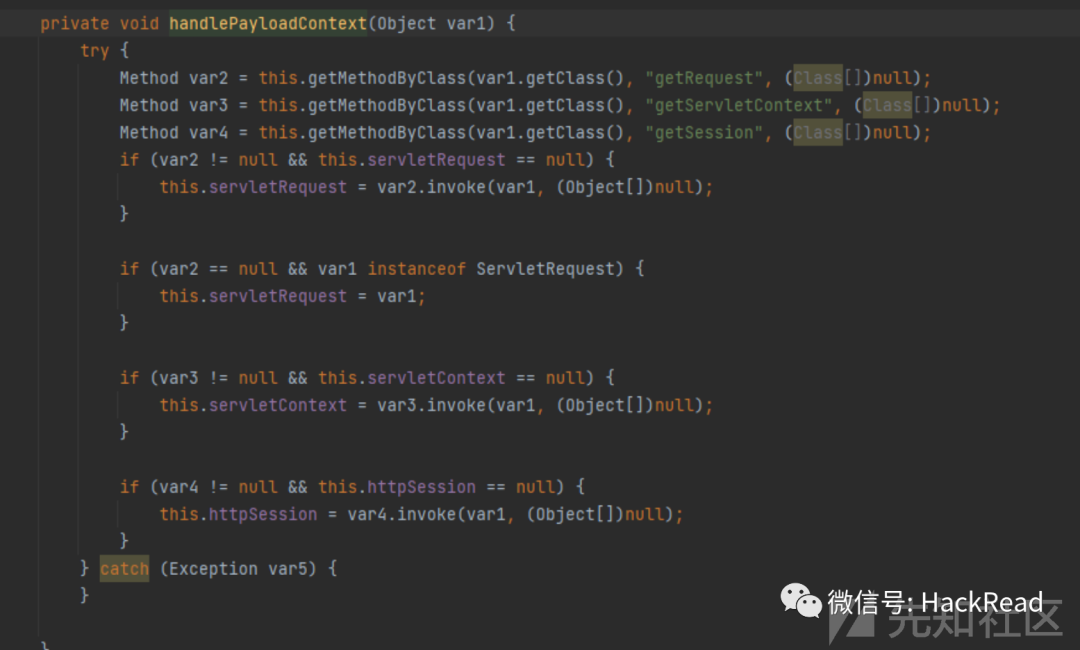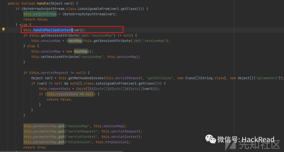 然后先调用handlePayloadContext方法,查看这个方法发现是获取pagecontext里面的相关属性,赋值给该类的servletRequest、servletContext、httpSession