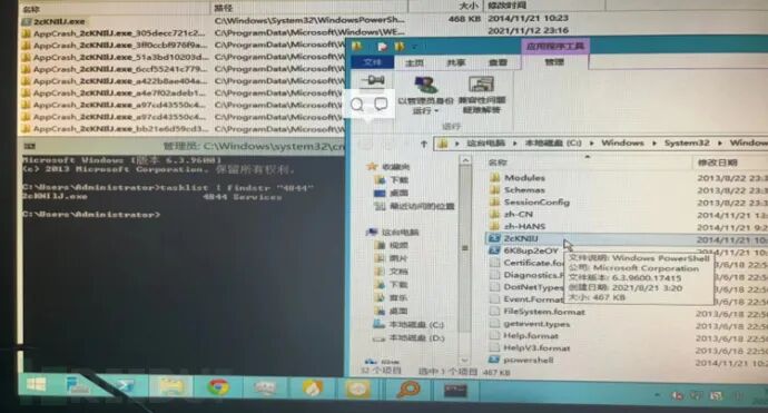 利用tasklist命令查看PID,锁定程序为PowerShell恶意脚本文件(这个应该是内网扫描脚本,可能是通过计划任务来定时调动此脚本,可以删除此脚本后排查一下任务计划项),直接kill掉。