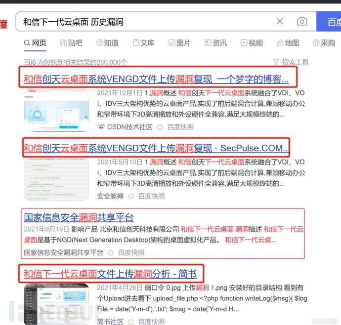 通过搜索引擎搜索和信下一代云桌面系统历史漏洞