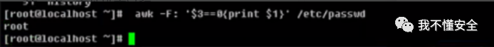 查看特权用户,发现只有一个root,也就是说只有root用户具备远程登录的性质