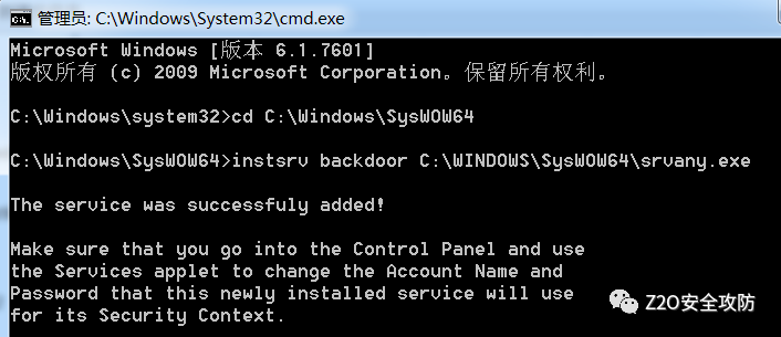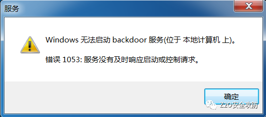 这是因为我们的后门程序不符合服务的规范,所以启动失败了,这就需要使用 instsrv + srvany 来创建服务了