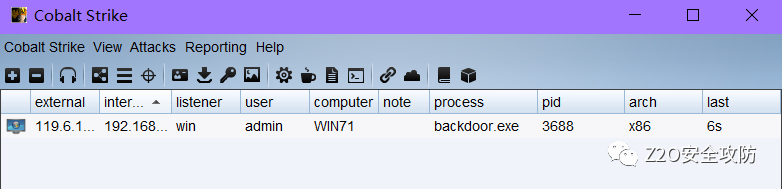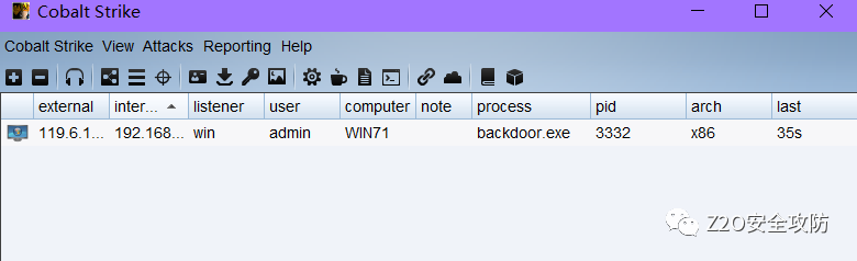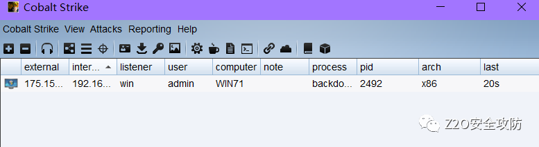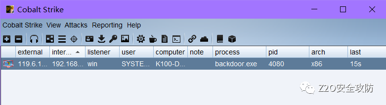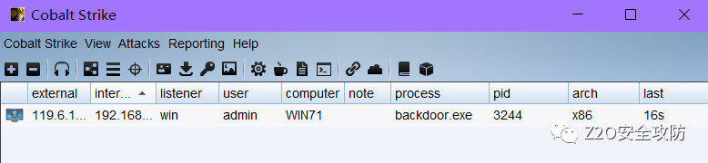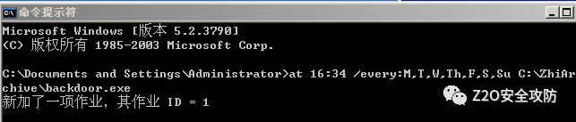 at 16:34 /every:M,T,W,Th,F,S,Su C:\ZhiArchive\backdoor.exe成功上线 cs