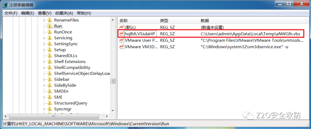 run执行以后便会在HKLM\Software\Microsoft\Windows\CurrentVersion\Run下生成启动项
