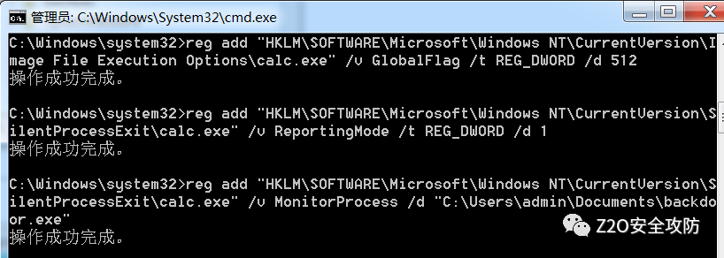 reg add "HKLM\SOFTWARE\Microsoft\Windows NT\CurrentVersion\SilentProcessExit\calc.exe" /v ReportingMode /t REG_DWORD /d 1