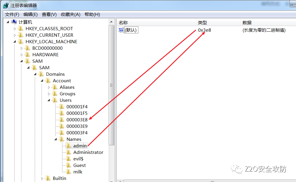 影子账户,顾名思义就像影子一样,跟主体是一模一样的,通过建立影子账户,可以获得跟管理员一样的权限,它无法通过普通命令进行查询,只能在注册表中找到其详细信息。