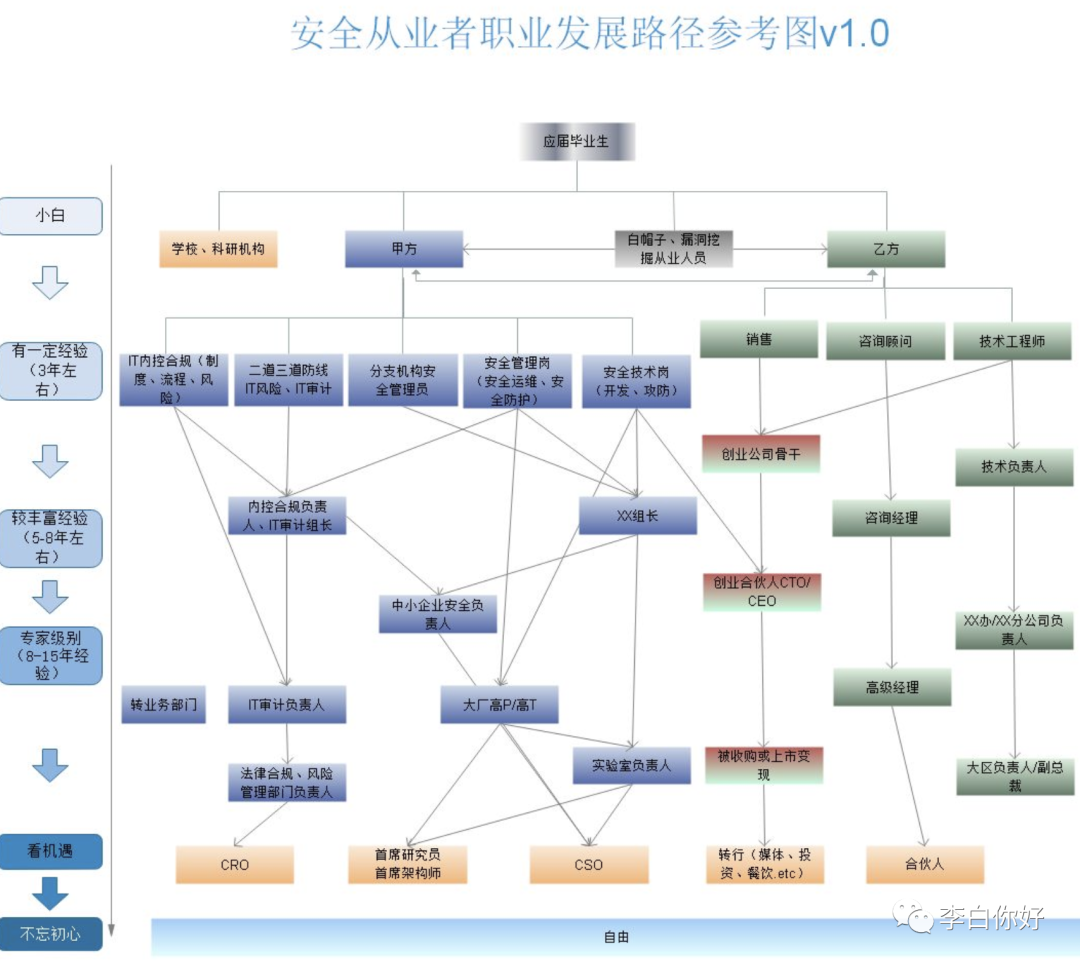 安全从业者职业发展路径,既然从事这个行业就要有自己的职业规划,你总不能挖一辈子SRC吧。说实话有时候天天日站、攻防演练感觉也就那样没啥意思了,师傅们有这样的感觉嘛