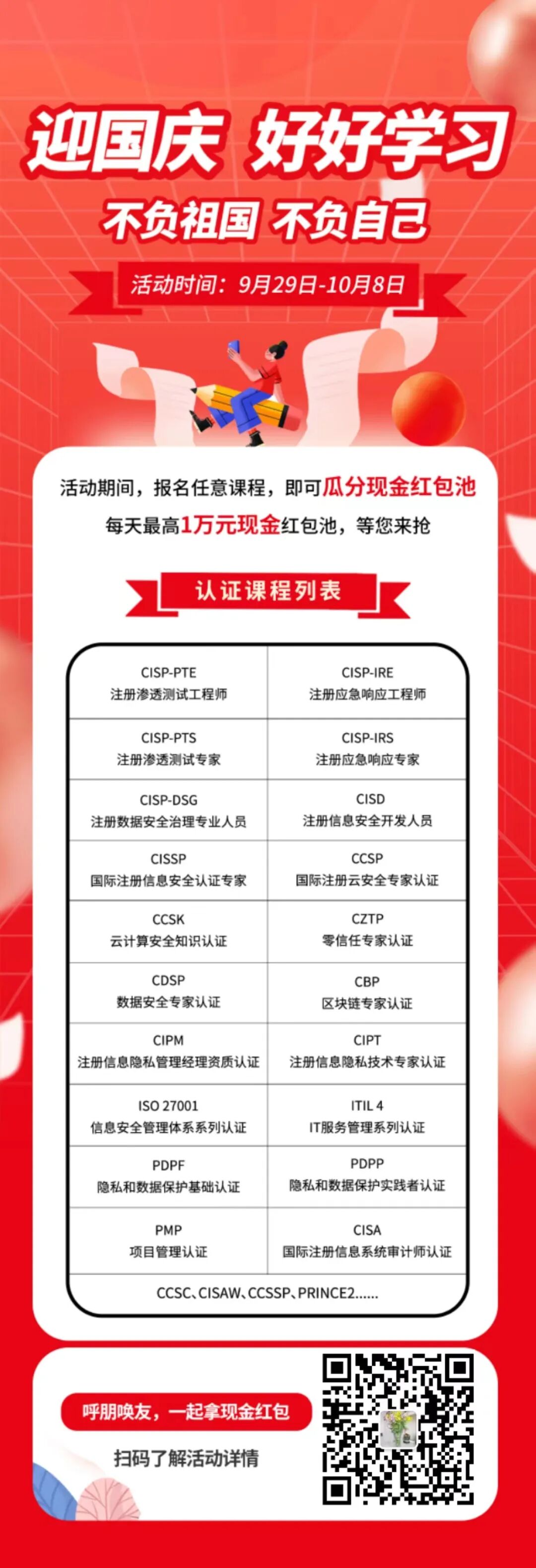 国庆一起考证,瓜分万元红包,赠送潇湘信安知识星球名额!!!