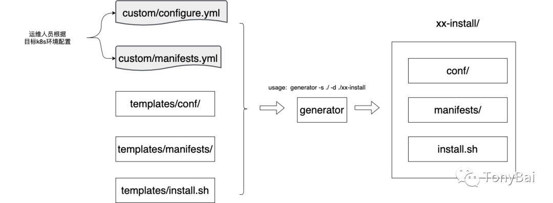 从上图可以知道,我们的工具是基于模板定制最终的配置与安装脚本的,其中: