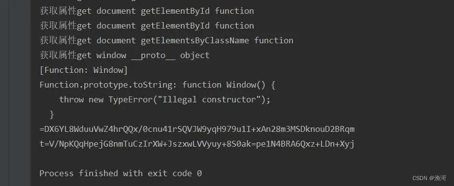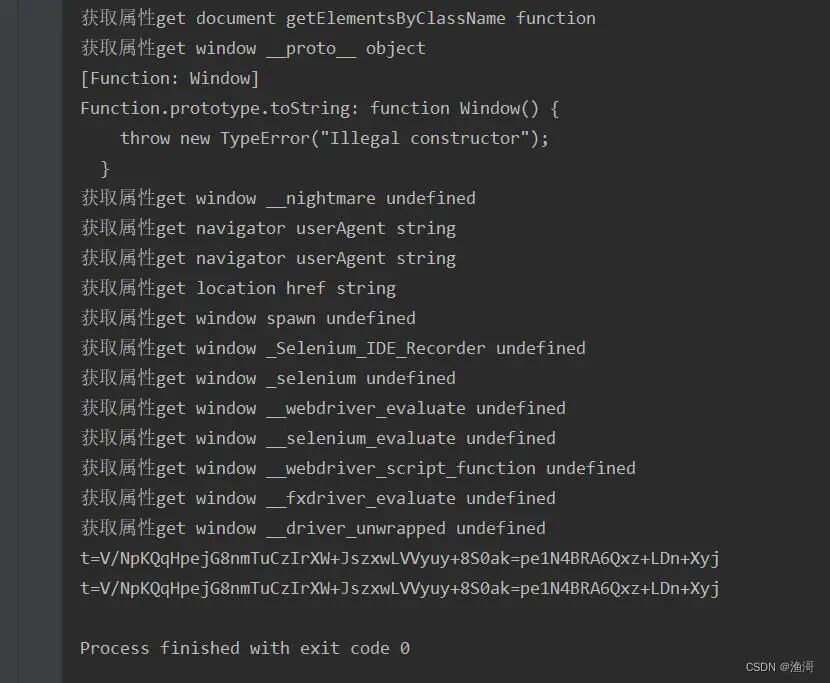 那么此时就得到了一组样本,当随机数恒定返回0.5时。入参【a63da42088bd8d635961ede065daeb51】的正确结果为【t=V/NpKQqHpejG8nmTuCzIrXW+JszxwLVVyuy+8S0ak=pe1N4BRA6Qxz+LDn+Xyj】,那么接下在就真正可以开始补环境了。