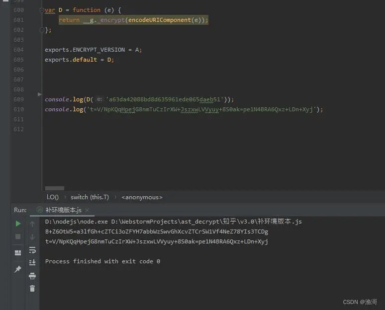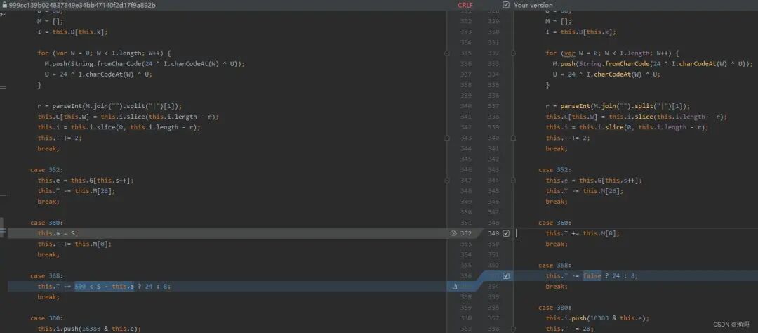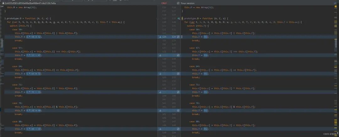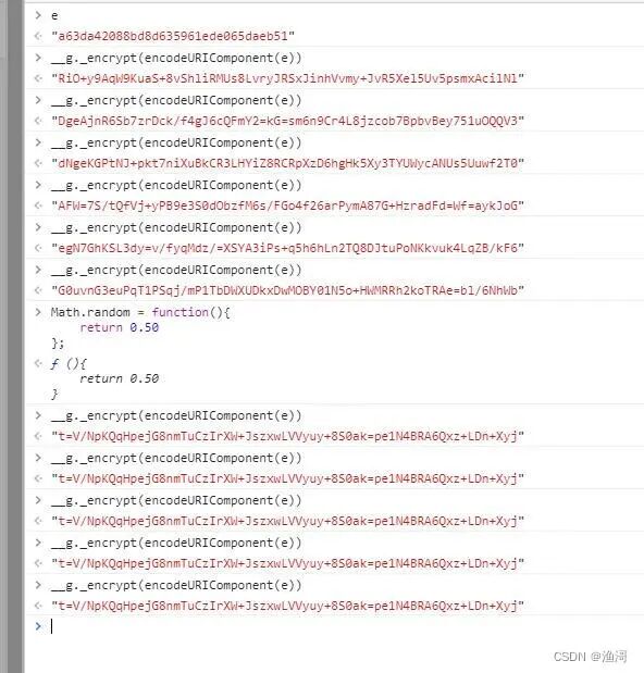 这里入参是【a63da42088bd8d635961ede065daeb51】结果是【RiO+y9AqW9KuaS+8vShliRMUs8LvryJRSxJinhVvmy+JvR5Xel5Uv5psmxAcilNl】,按照之前的办法,就是补环境使得到相同的结果,但是对于3.0版本就会出现问题。这里发现,相同的入参,多次执行,结果是不一样的。
