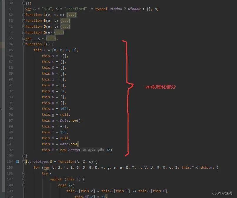 某乎的jsvmp与其他的略有不同,一般的jsvmp是堆栈式的,而某乎的这个是寄存器式的。也是也之前一样,是有vm的初始化,这次3.0的对象是【l】对象