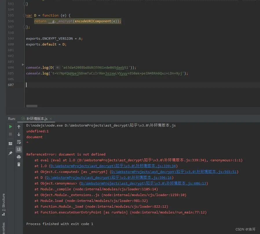 那么如果报错的话,我们也看不到,不方便补环境,所以去掉try代码块,只保留try里面的内容。