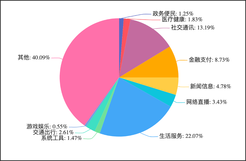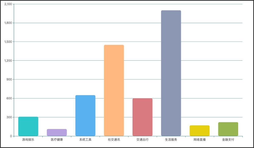 截止2022年09月底,通过潮启移动端安全管控平台共监测到山东省移动应用数量为11110款(不含历史版本),通过对移动应用行业分布数据追踪发现,目前山东省移动应用行业数量排名靠前的为生活服务类,约2431款,较08月份新增6款;社交通讯类约1453款,较08月份新增3款;金融支付类约962款,;新闻信息类约526款。