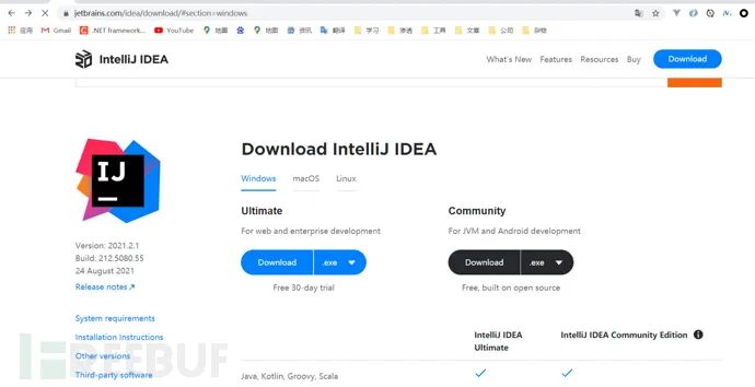 官网下载安装包 :https://www.jetbrains.com/idea/download/#section=windows