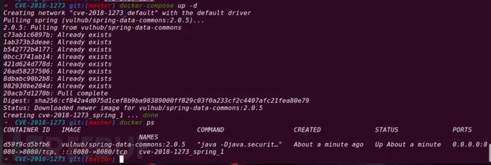 Spring Data是一个用于简化数据库访问,并支持云服务的开源框架,Spring Data Commons是Spring Data下所有子项目共享的基础框架。Spring Data Commons 在2.0.5及以前版本中,存在一处SpEL表达式注入漏洞,攻击者可以注入恶意SpEL表达式以执行任意命令。