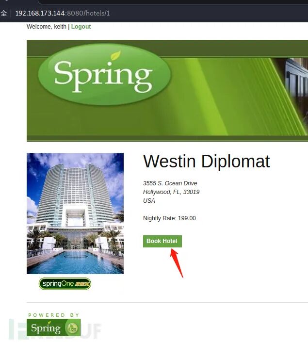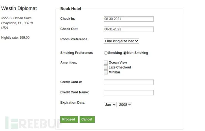 点击预订按钮”Book Hotel",填写相关信息后点击“ Process”(从这一步,其实WebFlow就正式开始了)︰